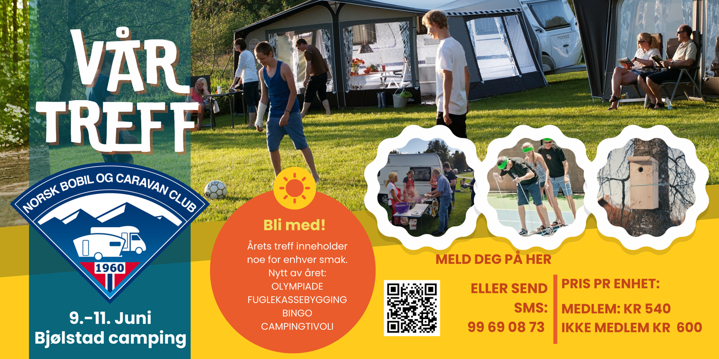 Velkommen til årets vårtreff på Bjølstad camping, Malmefjorden fra 9.-11. juni! Vi begynner innkjøring klokken 16.30
